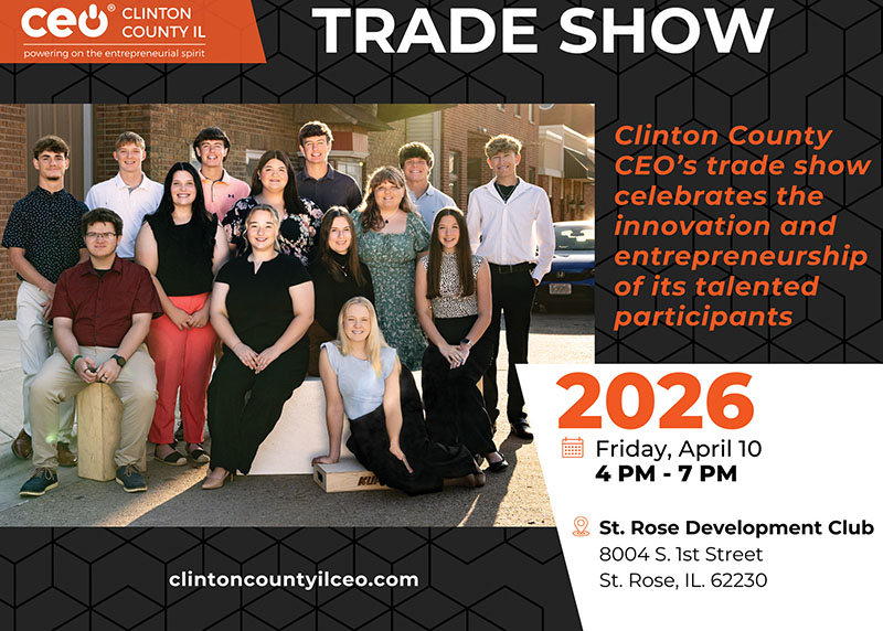 The 2026 Clinton County CEO trade show is 4-7 p.m. Friday, April 10, at a new location — St. Rose Development Club. The trade show had previously been at Hidden Lake Winery in Aviston.
