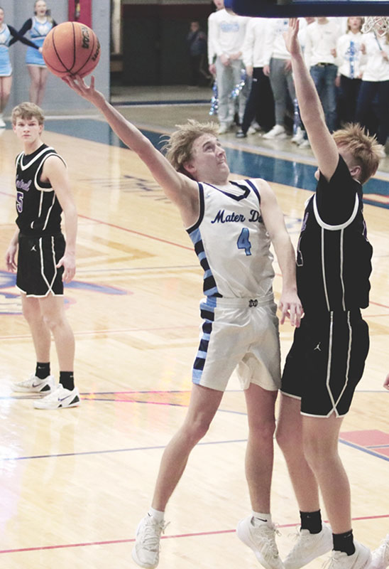 MD senior Gavin Peppenhorst got hot and historic in the second quarter with a pair of two-pointers, a pair of free throws and a three-pointer. His three-pointer, with 5:40 left in the quarter put him into the 1,000 point club for his career. He is just the 10th MD boy’s player to accomplish the feat.