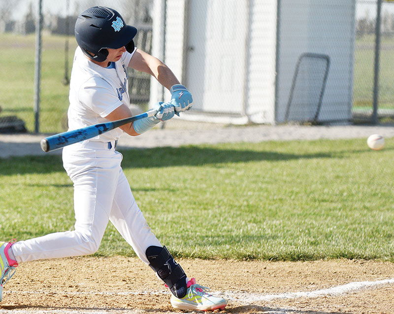 Hayden Melone had two hits, including a triple, with three runs scored in the Mater Dei baseball team's 11-9 loss to Wesclin. Photo by Matt Wilson The Mater Dei Knights baseball team moved to 3-3 on the season after winning two games at Vandalia on Saturday, March 28.